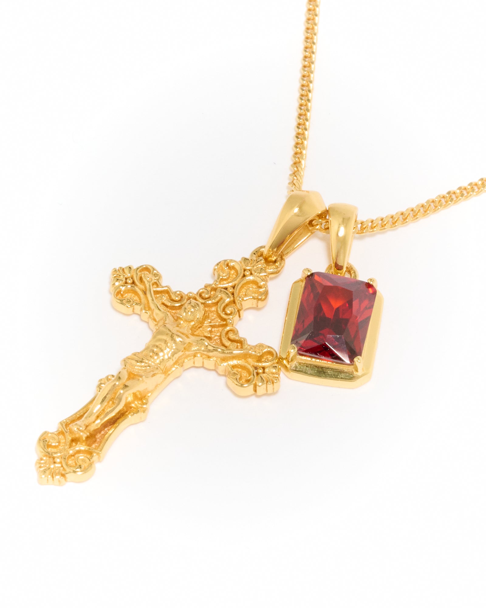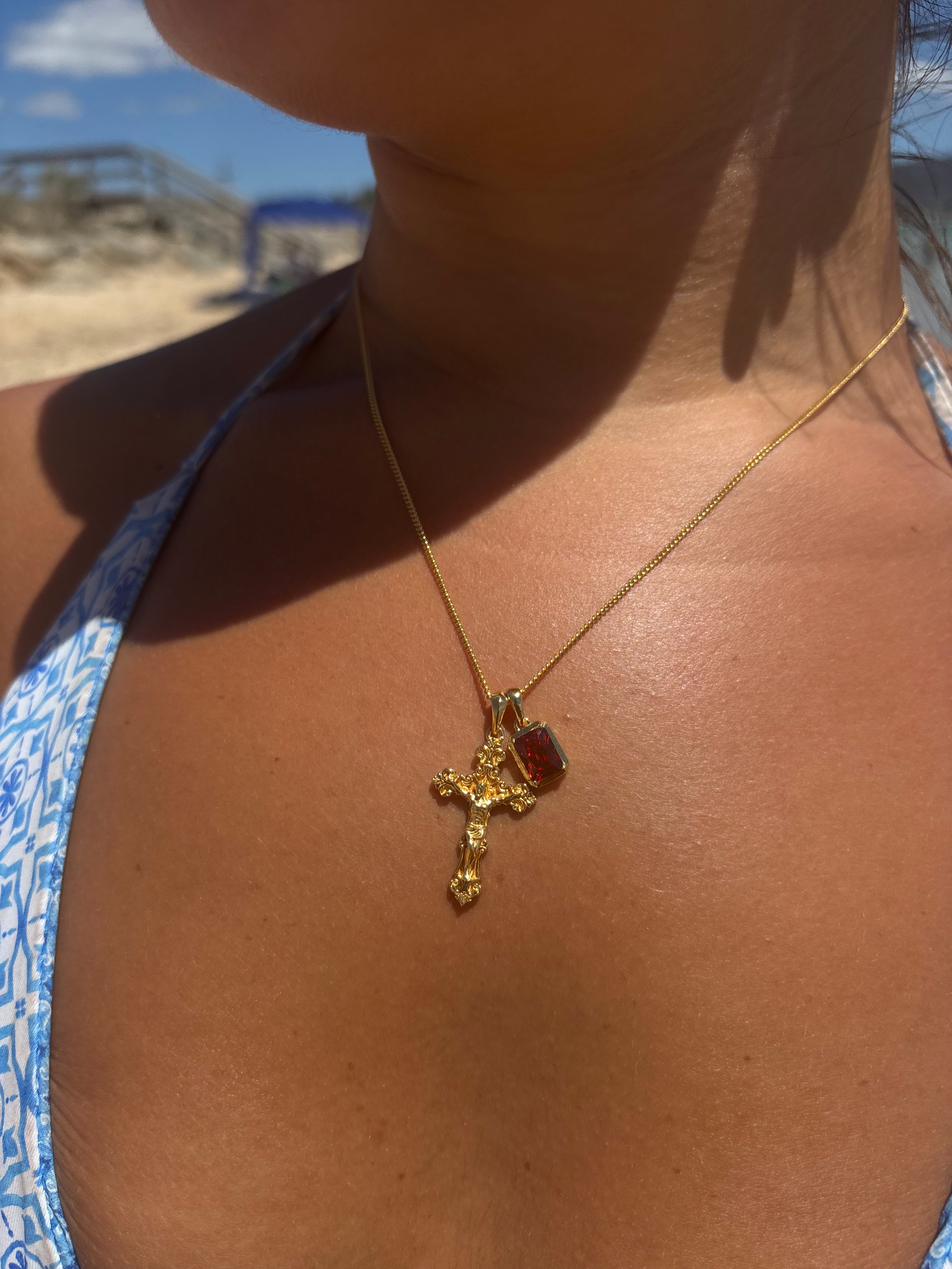 Motif crucifix x Lisbon red stone stack - Gold