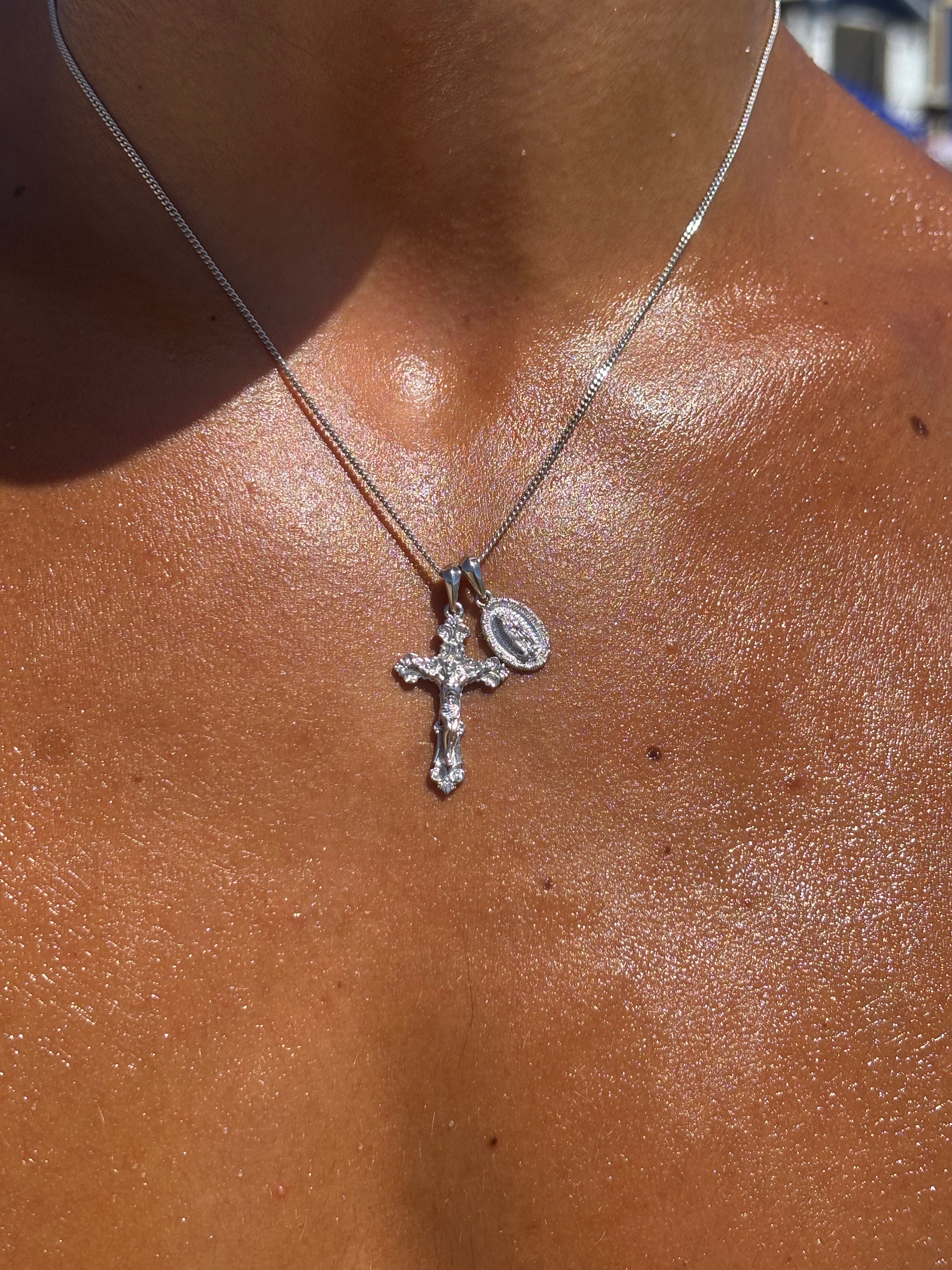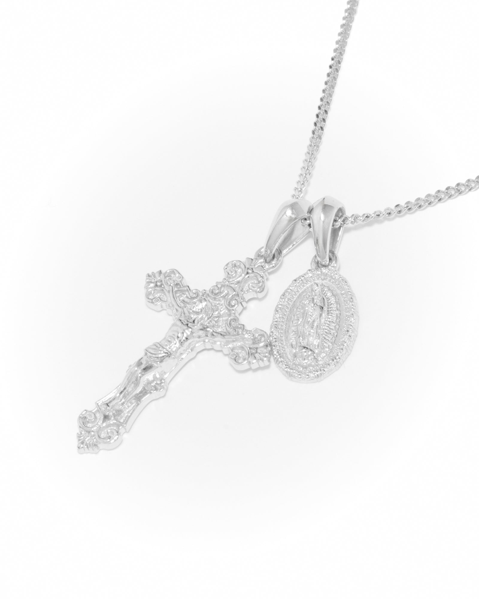 Motif crucifix x Mini guadalupe pendant stack - Silver