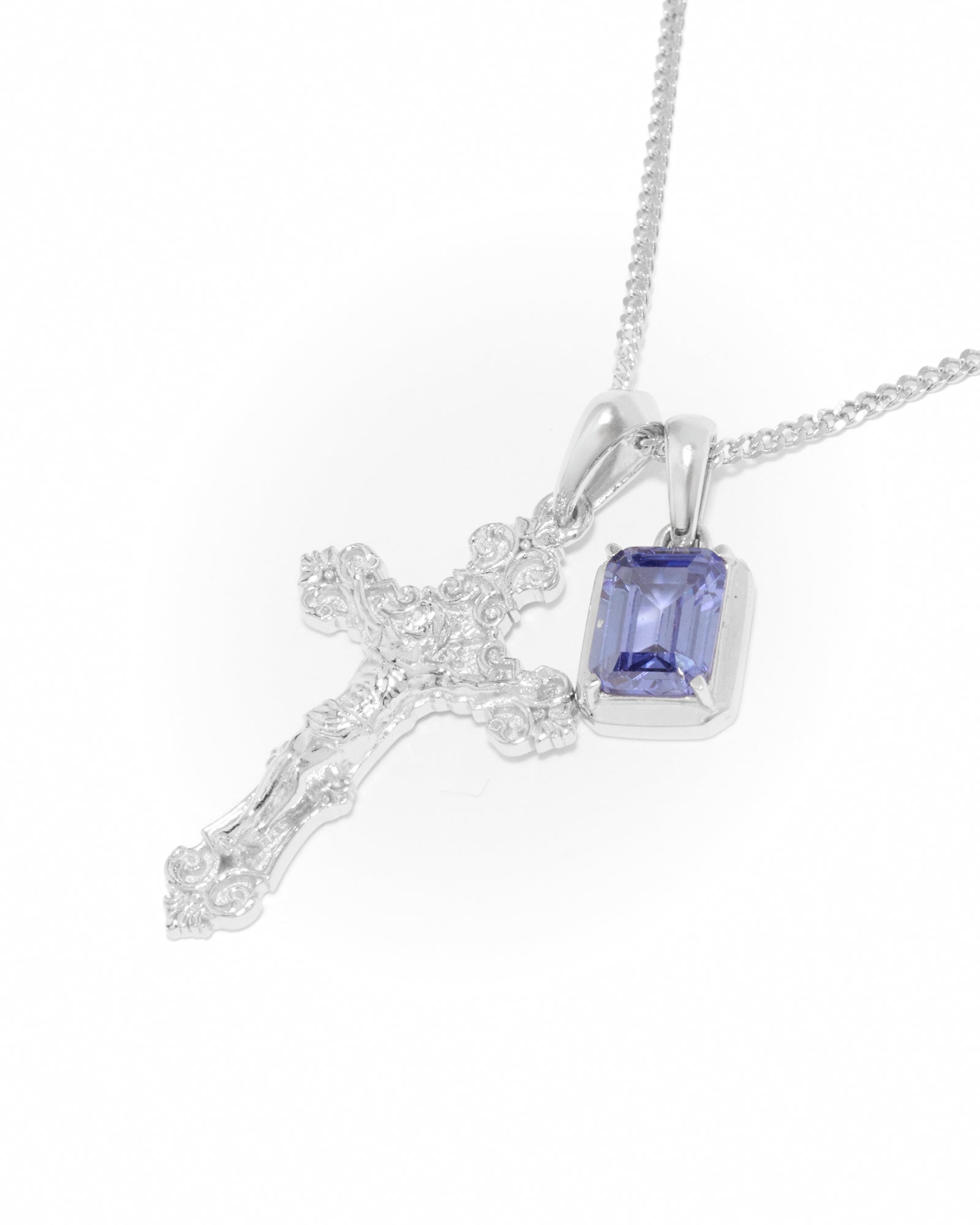 Motif crucifix x Sapphire stone stack - Silver