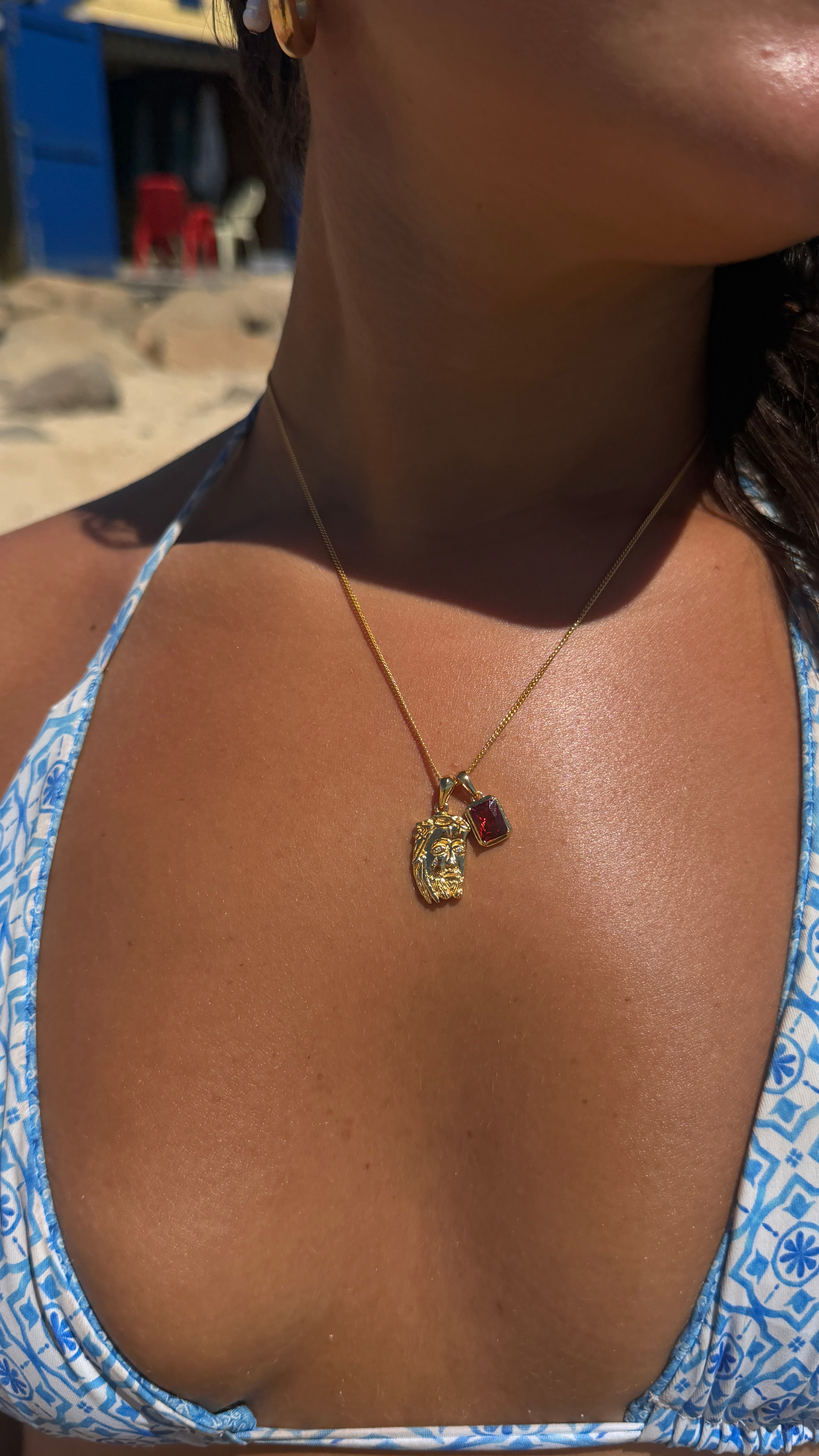 Tearing Jesus Piece x Sapphire stone stack - Gold