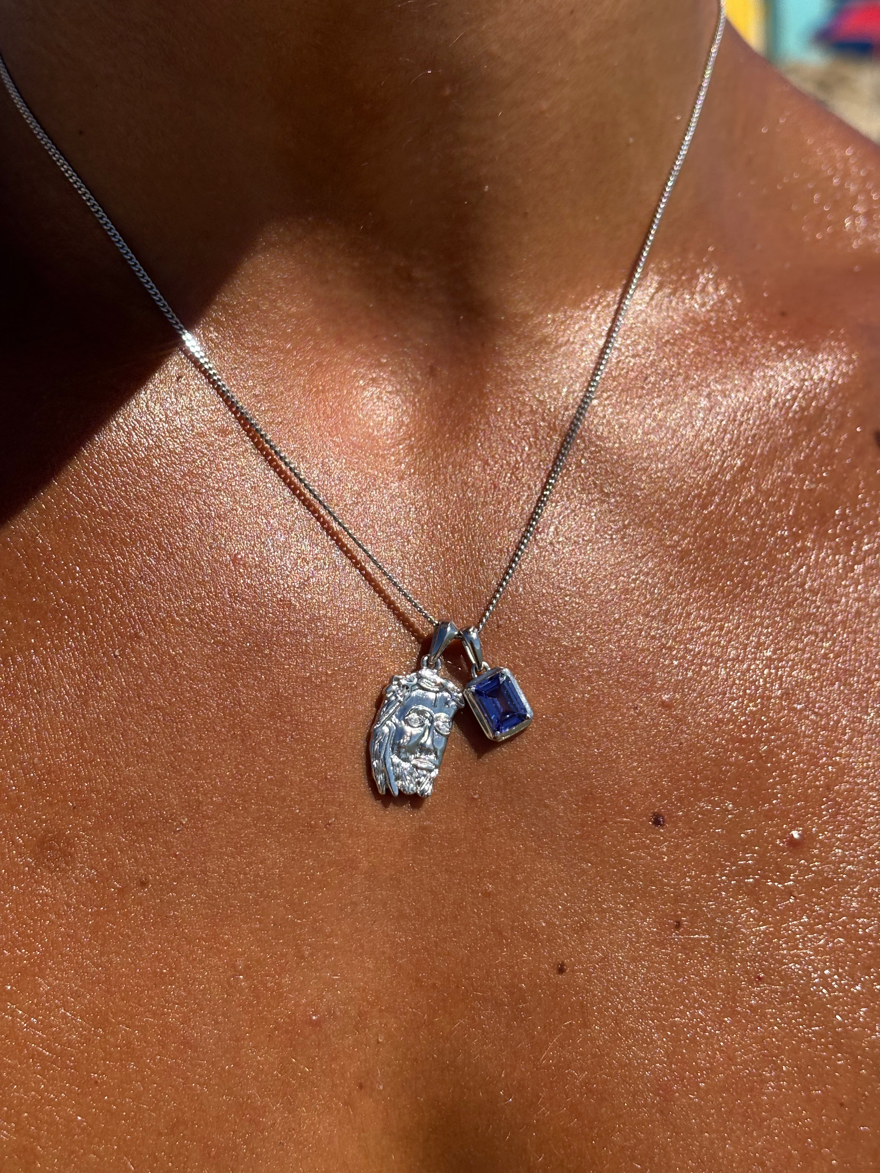 Tearing Jesus Piece x Sapphire stone stack - Silver